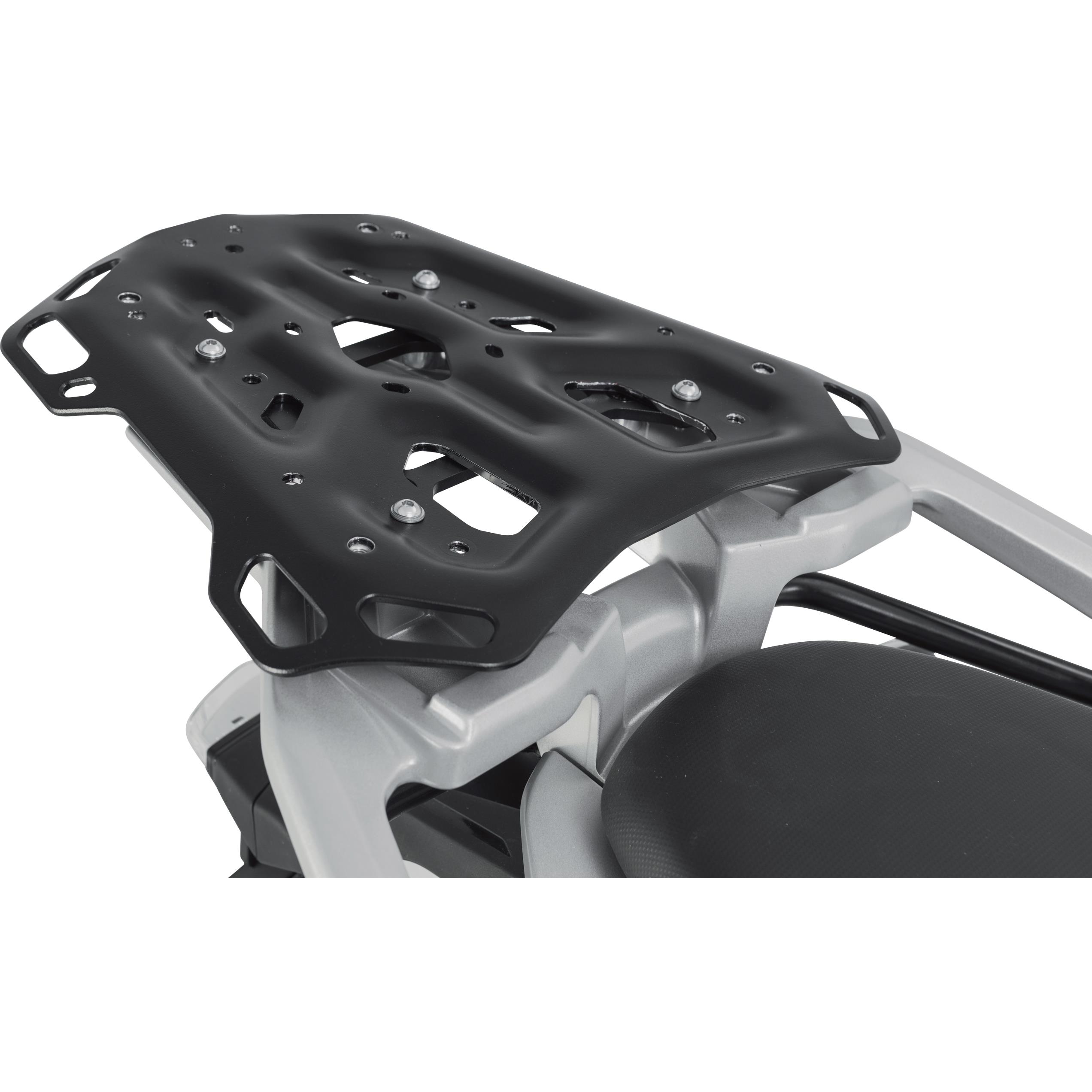 SW-Motech QUICK-LOCK Adventure-Rack Besonders robuster Gepäckträger für lange Touren auch auf unbefestigten Wegen.Materialstärke, Gewicht und Geometrie wurden bei der Weiterentwicklung des ALU-RACK für anspruchsvolle Touren sowie für den Offroad-Einsatz optimiert. Details: großzügige Auflagefläche zahlreiche, große Verzurrösen geben Hecktaschen sicheren Halt – durchfädeln von 25 mm-Verschlüssen ist möglich Funktionsbohrungen nehmen, dann zusätzlich notwendige, QUICK-LOCK Adapterkits zur Befestigung von Topcases auf (siehe unten) modellspezifischen Anbauelemente garantieren beste Passform und eine einfache Montage an Originalanbaupunkten extreme Belastbarkeit bei Vibration, Stößen und hohem Gewicht aus leichter und dennoch robuster, 4 mm starker Aluminium-Legierung, pulverbeschichtet Maße Platte ohne modellspezifischen Anbausatz (ca.):Länge x Breite x Höhe gesamt: 30 x 33 x 2 cmGewicht: 710 g Optionen: QUICK-LOCK Adventure-Rack Adapterkits für die sekundenschnelle Befestigung von Topcase der verschiedenen Hersteller (Bestellnummer 70000070000 und folgend) Gepäckbrückenverbreiterung für mehr Auflagefläche bei größeren Hecktaschen (Bestellnummer 70000070080) Zulassung:Koffer- und Gepäckträger müssen nicht zugelassen werden, benötigen deshalb auch keine Prüfzeichen, Gutachten oder ABE´s. Preis pro Stück