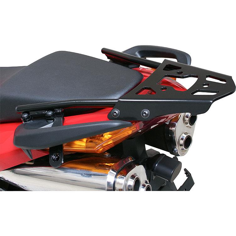 SW-MoTech Quick-Lock Alu-Rack Gepäckträger Formschönes ALU-RACK zur Befestigung von Gepäck z. B. Topcase diverser Hersteller Details: perfekt abgestimmt auf die Silhouette des Motorrades sehr leichte und möglichst schlanke Gepäckbrücke aus pulverbeschichteten Aluminium – bei manchen Modellen ergänzt durch Stahlrohrstreben aufwendig gelasert aus hochfester Aluminium-Legierung sehr hohe Funktionalität und Stabilität Oberfläche als wirksamer Korrosionsschutz pulverbeschichtet die Montage erfolgt an Originalhaltepunkten durch die zusätzlich notwendigen, in sekundenschnelle mittels Schnellverschlüssen abnehmbaren, Quick-Lock Adapterplatten (70000011000 und folgend) für verschiedene Topcasemarken oder Universaltopcaseadapterplatten passend natürlich auch für Gepäckrollen geeignet – eine noch stabilere Befestigung wird hier mit der abnehmbaren Verbreiterungsplatte (70000011050) erreicht mit der Gummiabdeckung (70000011130) läßt sich die T-förmige Aussparung bei Nichtgebrauch abdecken. Zulassung:Koffer- und Gepäckträger müssen nicht zugelassen werden, benötigen deshalb auch keine Prüfzeichen, Gutachten oder ABE´s. Preis pro Stück