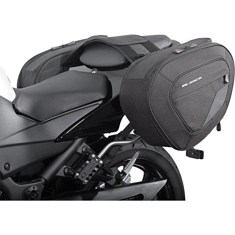 QUICK-LOCK Trägerarme für Blaze Satteltaschen Ermöglichen die Verwendung der Blaze und Blaze PRO Satteltaschen. Details: Haltearme zur Montage an den Soziusrastenhaltern Bei Nichtgebrauch ist der eigentliche Arm in sekundenschnelle abnehmbar Es verbleibt nur die Aufnahme an den Soziusrasten Trägerarme für Blaze nur passend für die niedriger positionierten Blaze und Blaze PRO Satteltaschen!! Trägerarme für Blaze H nur passend für die höher positionierten Blaze H und Blaze PRO H Satteltaschen!! ACHTUNG: Trägerarme und Taschen können nur gemeinsam verwendet und bestellt werden – mit anderen Taschen funktionieren diese nicht!! Optionen: Satteltaschenpaar Blaze mit höher positionierter Querverbindung (tiefer positionierte Taschen) passend für die Trägerarme (Bestellnummer 70250500050) Satteltaschenpaar Blaze H mit tiefer positionierter Querverbindung (höher positionierte Taschen) passend für die Trägerarme H (Bestell-Nr. 70250500051) Satteltaschenpaar Blaze PRO mit höher positionierter Querverbindung (tiefer positionierte Taschen) passend für die Trägerarme (Bestellnummer 70250500160) Satteltaschenpaar Blaze PRO H mit tiefer positionierter Querverbindung (höher positionierte Taschen) passend für die Trägerarme H (Bestell-Nr. 70250500161) Zulassung:Satteltaschen und deren Halter müssen nicht zugelassen werden, benötigen deshalb auch keine Prüfzeichen, Gutachten oder ABE´s. Preis pro Satz für beide Fahrzeugseiten (ohne Taschen) Montage Blaze Satteltaschen an modellspezifischen Trägerarmen: die Trägerarme werden wie in deren modellspezifischen Anbauanleitung beschrieben ans Fahrzeug befestigt werden die Taschen nicht genutzt verbleiben nur recht kleine Aufnahmeblöcke am Motorrad (meist am Träger der Soziusfußrasten) bitte bei der Montage dieser Blöcke das Gegenstück der Klickverschlüsse dieser Taschen (gehören zu den Taschen) mit verschrauben stecken Sie die dort dazu gehörenden QUICK-LOCK Arme in diese Aufnahmeblöcke nun die Taschen mit den Einschubfächern von hinten um diese Arme schieben danach die Klett-Querverbindung so einstellen, dass die Taschen straff am Heck sitzen (ist das einmal eingestellt kann bei weiteren Befestigungen darauf verzichtet werden) als letztes die Klickbefestigungsriemen vorne an den Taschen in deren Aufnahmen an den Aufnahmeblöcken stecken und straff ziehen die Gurtenden bitte gegen Flattern sichern – Klettbänder dafür befinden sich an deren Enden das ergibt einen festen flatterfreien Sitz werden die beiden Klickverschlüsse gelöst können die Taschen in Sekundenschnelle nach hinten abgenommen werden auf die Montage geht dann wieder ähnlich schnell bitte generell immer auf den ersten Fahrten oder bei neuer Beladung zunächst vorsichtig die Geschwindigkeit steigern