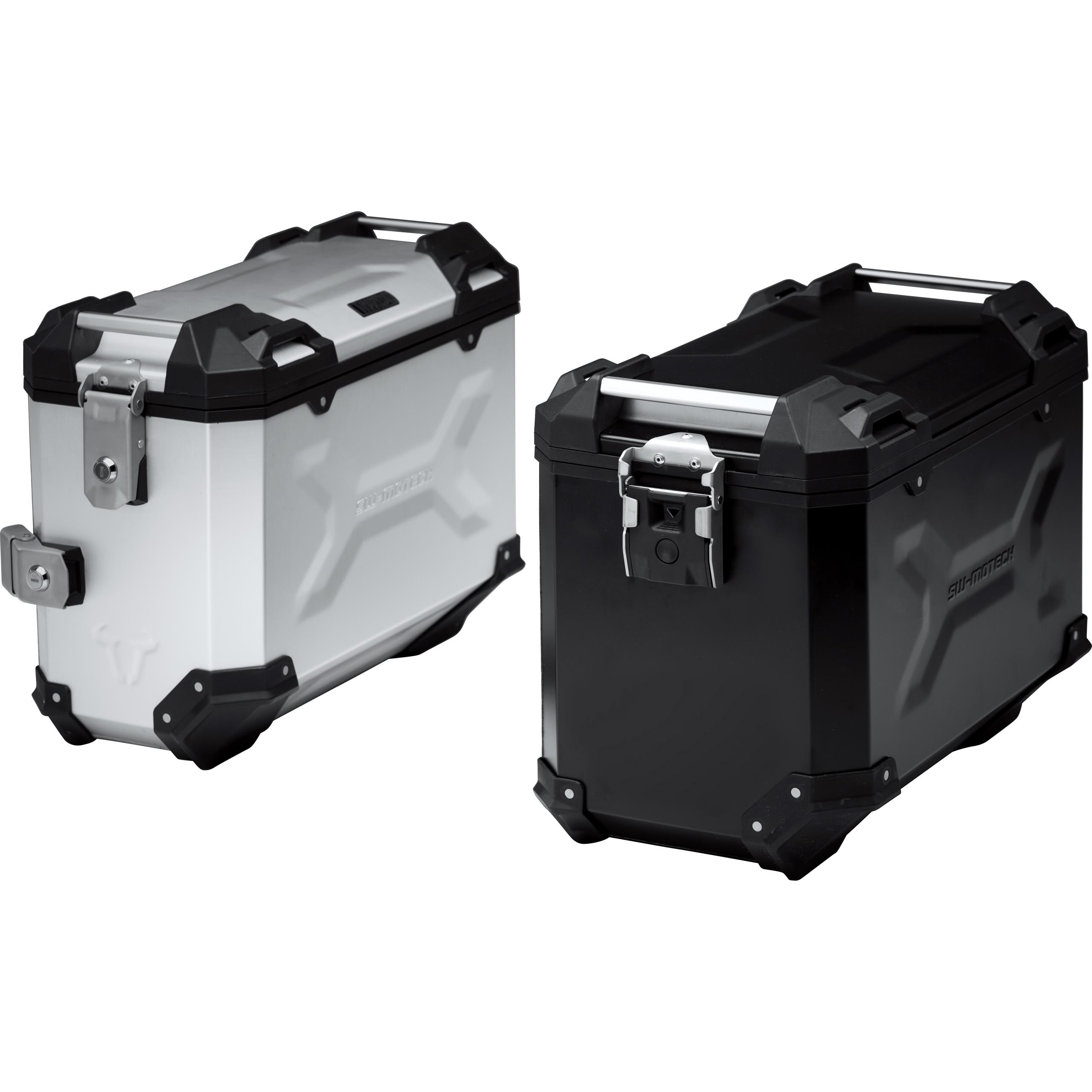 SW-Motech TraX Adventure Alu Seitenkoffer Extrem robuste und wasserdichte Top-Loader Aluminium Seitenkoffer. Details: silber eloxiert oder schwarz pulverbeschichtet – also bestens vor Witterung geschützt und kein Aluminiumabrieb am Inhalt wie bei vielen anderen Alukoffern robotergestütztes Schweißen und Stanznieten verhindern Eindringen von Staub und Wasser hohe Stabilität durch Designprägungen des 1,5 mm starken Aluminium tiefgezogenen Deckel und geschweißte Kanten abgeschrägte Seitenkanten für hohe Bodenfreiheit bei Kurvenfahrten zusätzlicher Schutz durch Ecken aus glasfaserverstärktem Kunststoff aufklappbarer Top-Loader-Deckel kann auch mit Schnellverschluss und Öffnungsbegrenzer komplett abgenommen werden vier stabile, in das Deckeldesign integrierte Verzurrpunkte ermöglichen den zusätzlichen Transport weiteren Gepäcks auf dem Kofferdeckel mit eloxierten Aluminium-Tragegriffen Lieferung erfolgt ohne Schlösser – bitte diese zusätzlich mitbestellen (4er Satz wenn nur Seitenkoffer, 6er Satz wenn auch ein Topcase verwendet werden soll) mit entsprechenden Adapter für alle Quick-Lock (ausser Kontour), Givi Monokey oder Hepco & Becker Seitenkofferträger passend Maße:M und L Version unterscheiden sich nur von der BreiteM:37 Liter StauraumLänge x Breite x Höhe 49 x 23 x 37 cm L:45 Liter Stauraum – meist für einen Helm passend, bei kleinen Helmen sogar für zweiLänge x Breite x Höhe 49 x 28 x 37 cm Optionen: passendes Topcase (70200210000 oder 70200210001) gleichschließendes Schloßkit für zwei oder drei Koffer (70210100004 oder 70210100003) Adapter für Seitenträger (70000001130, 70000001131,70210100070 oder 70210100080) TRAX GEAR+ Kofferinnentasche (70210100190) TRAX GEAR+ Tasche für die Innenseite des Deckels (70210100210) TRAX GEAR+ Gepäcknetz für die Innenseite des Deckels (70210100230 oder 70210100231) TRAX GEAR+ wasserdichte Aufsatztasche für den Deckel (70210100220) Campingtisch für die Montage auf den Kofferdeckeln (70210100240) optional mit separaten Tischbeinen (70210100250) zur Nutzung mit nur einem Koffer oder ganz ohne Koffer Universalhalter für Zubehör (70210100140) Flaschenkit für den Universalhalter (70210100150 oder 70210100151) Kanisterkit für den Universalhalter (70210100170) Zulassung:Koffer müssen nicht zugelassen werden, benötigen deshalb auch keine Prüfzeichen, Gutachten oder ABE´s. Preis pro Stück