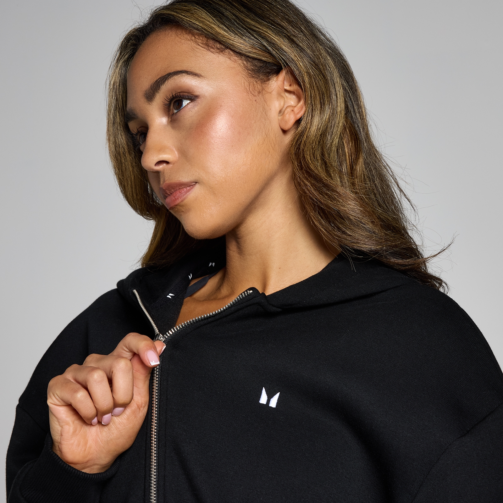 Details: MP Damen Basics Kapuzenpulli mit durchgehendem Reißverschluss — Schwarz – XXS