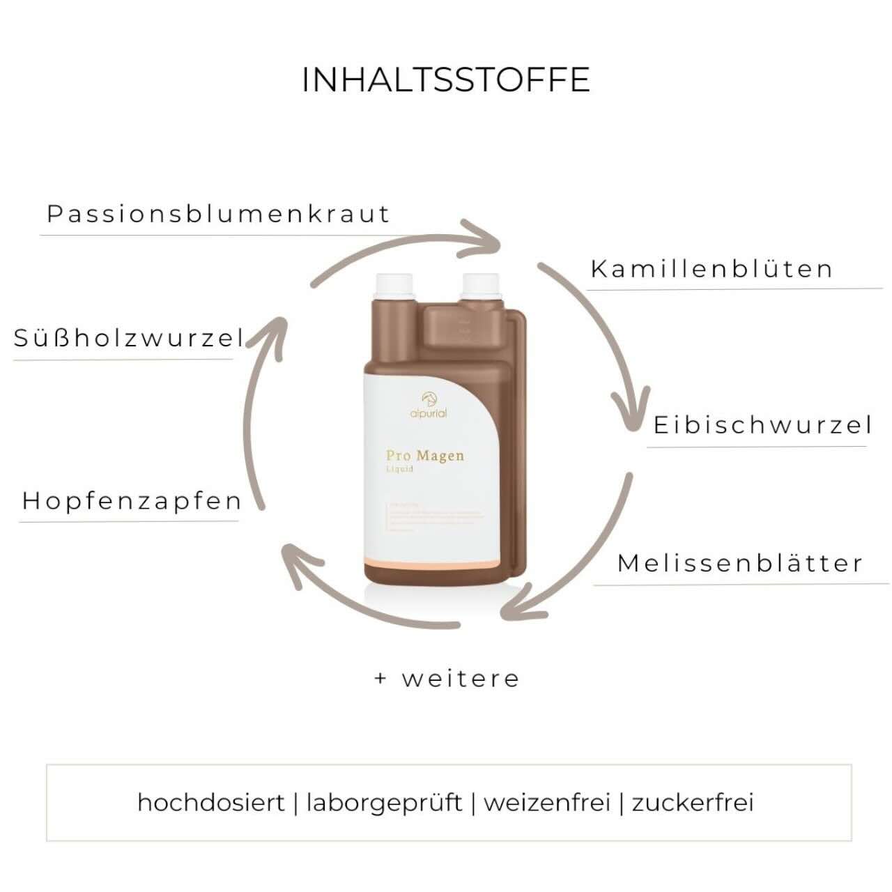 Alpurial Pro Magen: Natürliche Unterstützung für Pferdemagen. Fördert Entspannung & Wohlbefinden. Flüssig für optimale Aufnahme. Jetzt entdecken!
