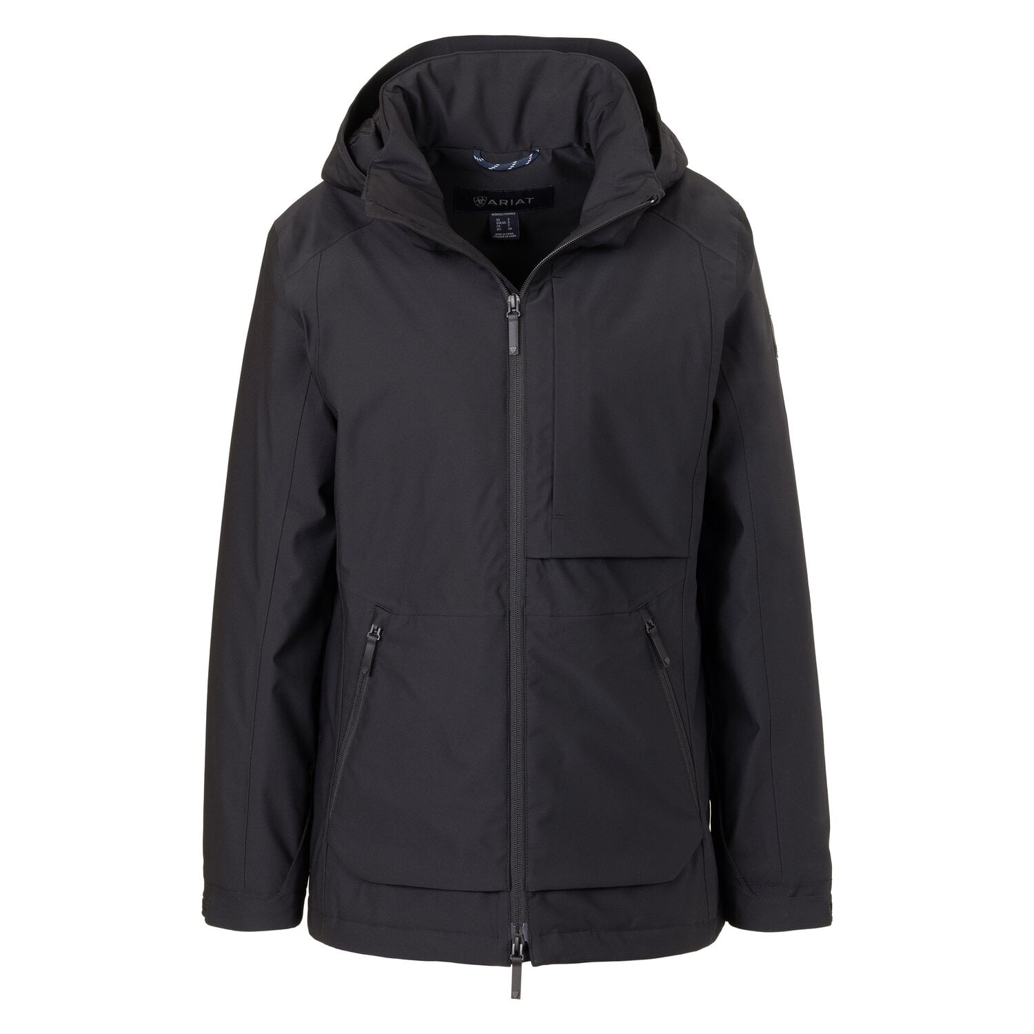 Diese Jacke von ARIAT® ist ein Must-have für alle, die bei ihren Outdoor-Aktivitäten weder auf Komfort noch auf Funktionalität verzichten möchten. Sie vereint Funktionalität, Komfort und Wetterschutz in einem vielseitigen Design. Dank der innovativen DRYShield™-Technologie ist die Jacke nicht nur wasserdicht, sondern auch atmungsaktiv, sodass sie bei Regen und Nässe zuverlässig trocken hält und gleichzeitig ein angenehmes Tragegefühl gewährleistet. Für kältere Tage sorgt die Cool Climate™-Isolierung, die eine optimale Wärmeleistung bietet, ohne dabei die Bewegungsfreiheit einzuschränken. Der praktische Zwei-Wege-Reißverschluss erleichtert das An- und Ausziehen und ermöglicht eine flexible Anpassung. Eine Sattelbelüftung sorgt zusätzlich für eine verbesserte Luftzirkulation, wodurch sich die Jacke besonders für den Reitsport eignet. Mit drei Reißverschluss-Taschen bietet sie ausreichend Stauraum für persönliche Gegenstände, während die abnehmbare Kapuze Flexibilität bei wechselnden Wetterbedingungen bietet. Ob bei Regen, Wind oder kühleren Temperaturen – diese Jacke hält warm, schützt vor den Elementen und überzeugt durch ihre durchdachte Verarbeitung und hochwertige Materialien. – Die wasserdichte, atmungsaktive Konstruktion DRYShield™ hält anhaltenden Regen ab, lässt aber Luft eindringen – Cool Climate™-Isolierung – bietet eine optimale Wärmeleistung, ohne dabei die Bewegungsfreiheit einzuschränken – Abnehmbare Kapuze – Diverse Taschen – Sattelbelüftung mit Reißverschluss