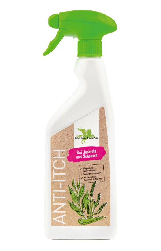 Anti-Itch von Bense & Eicke enthält neben wertvollem Lebermoos, Salz aus dem toten Meer, Aloe Vera, Teebaumöl und weitere pflegende Öle. Haut und Haar werden von Juckreiz auslösenden Substanzen gereinigt und gleichzeitig wirken die intensiv pflegenden Inhaltsstoffe beruhigend auf die Haut. Juckreiz und Scheuerneigung werden deutlich gemindert – auch geeignet zur unterstützenden Pflege bei Sommerekzem. Alle Vorteile auf einem Blick: reinigt Haut und Haar von Juckreiz auslösenden Substanzen pflegende Inhaltsstoffe Juckreiz und Scheuerneigung können gemindert werden Anwendung: Die betroffenen Stellen gegen den Fellstrich einsprühen und ggf. einmassieren. Inhaltsstoffe: Lebermoos, Salz aus dem Totem Meer, Aloe Vera, Teebaumöl, Lavendelöl Enthält Pelargonium graveolens, Extrakt.