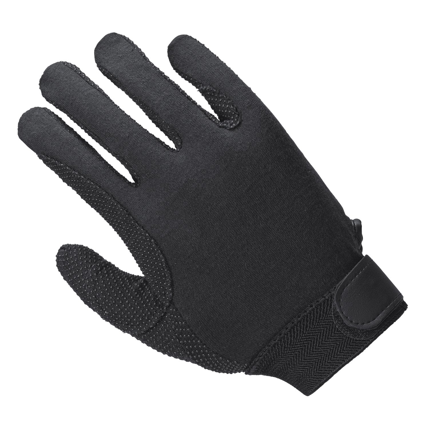 Der Klassiker besticht durch seinen angenehmen Tragekomfort! Die Kinder-Reithandschuhe weisen eine gute Passform auf und für einen rutschfesten Griff befinden sich an der Innenhand viele kleine Gumminoppen. Außerdem verfügen die Baumwoll-Handschuhe für Kinder über einen Klettverschluss am Handrücken und Zügelverstärkungen.