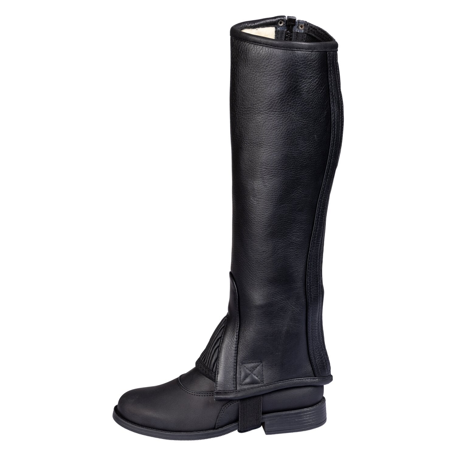 Die Chaps Zwolle von black forest sind aus hochwertigem Qualitätsleder gefertigt. Sie ersetzen in Kombination mit einem Jodhpurstiefel durchaus einen Reitstiefel. Dank der Fütterung aus Lavalan, einer hochfunktionalen, nachhaltigen und tierfreundlichen Wattierung aus europäischer Wolle, verleihen sie wohlige Wärme und ein angenehmes Tragegefühl. Die Elastikeinsätze am Spann und an der Seite sorgen dafür, das sich die Chaps perfekt der Wade anpassen. Abgerundet wird der Komfort durch den Gummi-Fußsteg, der im Laufbereich durch einen Ledereinsatz verstärkt ist.