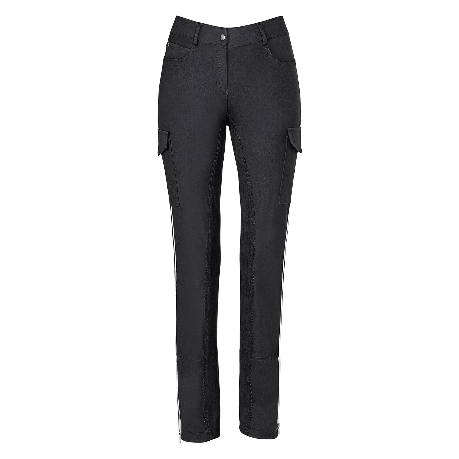 Diese Outdoor-Jodhpur-Reithose von black forest ist die perfekte Wahl um bei Wander-, Aus- und Distanzritten optimal gekleidet zu sein. Beste Materialeigenschaften wie wasser- wind- und schmutzabweisend zeichnen diese mit Teflon beschichtete Hose aus. Neben dem Vollbesatz für einen rutschfesten Sitz, sorgen die kurzen Reißverschlüsse und die abnehmbaren Fußstege an den Beinabschlüssen für maximalen Komfort. In den Front-Einschubtaschen, den mit Druckknopf versehenen Gesäß-Patten- und den Seitentaschen am Oberschenkel kann alles Wichtige verstaut werden. Neben den Wohlfühlmaterialien und den Features gibt es weitere Raffinessen wie die Reflexstreifen entlang der Seitennaht und dem dezenten Label am hinteren Bund. Die Teflonbeschichtung hält bis zu 30 Wäschen.