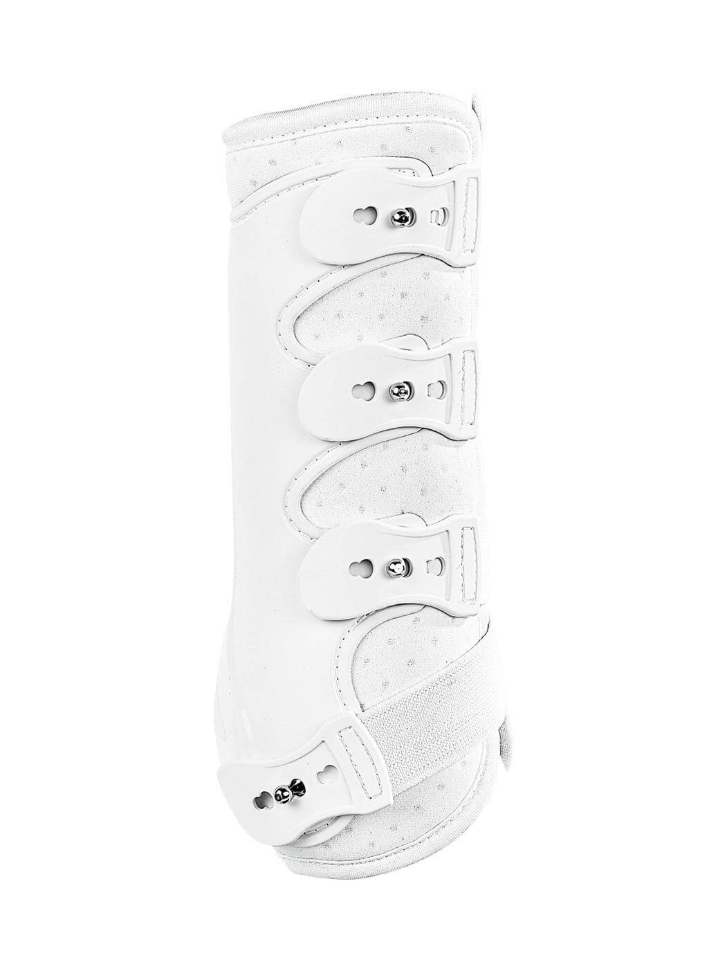 * rundum geschlossene, anatomisch geformte Dressurgamasche für beste Performance * stabile Hartschale im gesamten Sehnen- und Fesselkopfbereich * innen großzügig mit perforierten, synthetischem Kautschuk gepolstert für wirksame Luftzirkulation zum Schutz vor Überhitzung * vier Elastikanzüge mit Knopfverschluss für einfachste Befestigung * individuelle Anpassung dank jeweils drei Weiteneinstellungen * besonders pflegeleicht und einfach in der Handhabung * für vorne und hinten geeignet, für hinten i.d.R. eine Nummer größer wählen als vorne