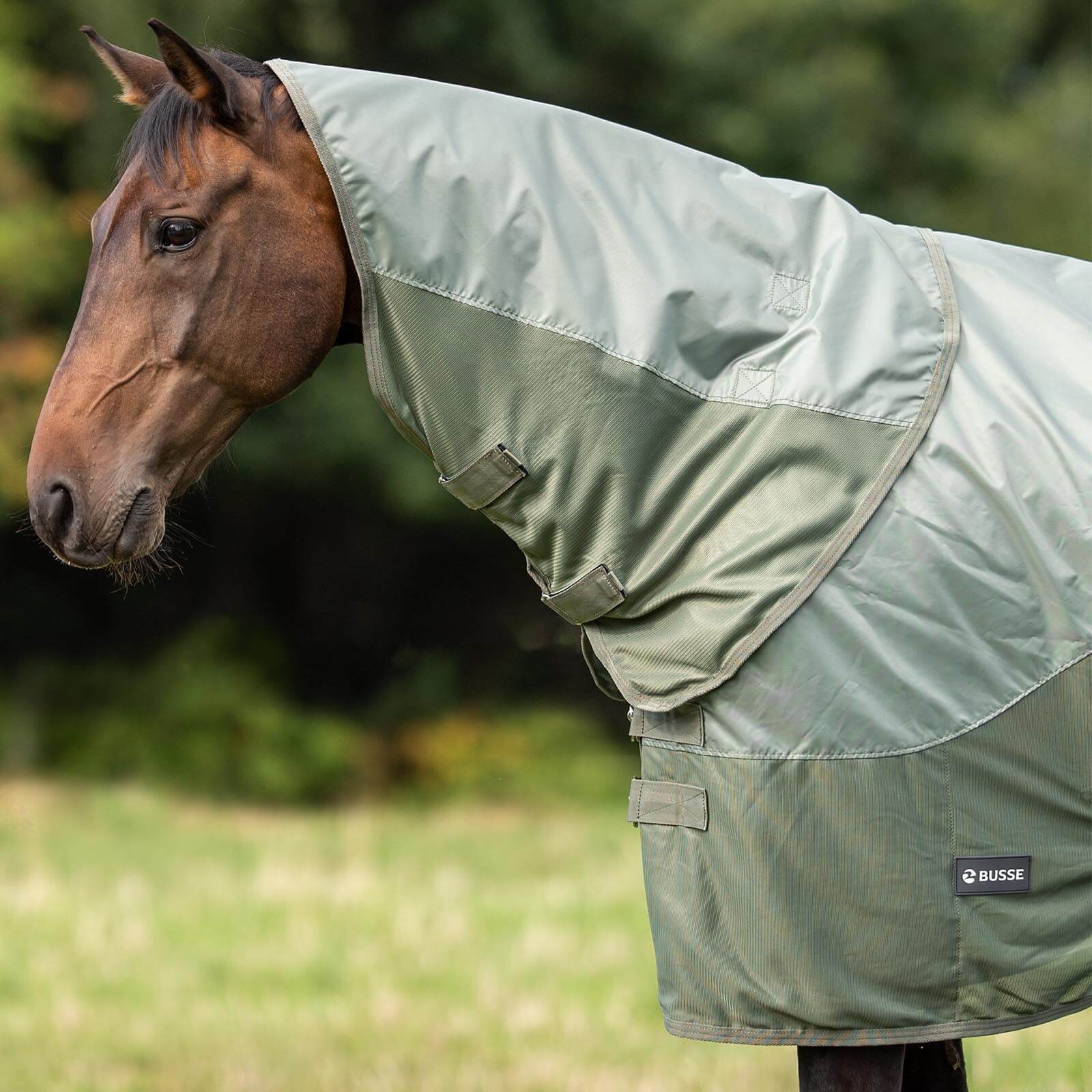BUSSE Halsteil Rainfly mit Klettverschluss Light Olive L (155/165) | kavalio – für mich und mein Pferd