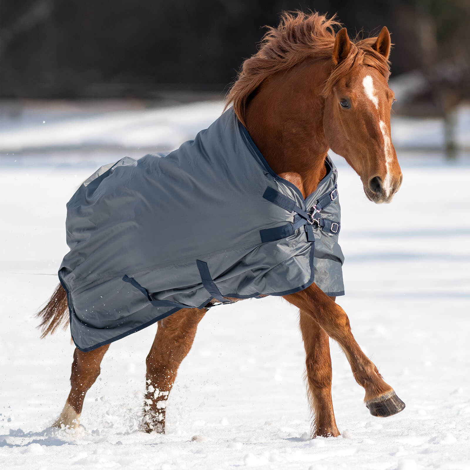* ultimative Regendecke ohne Isolierung, auch für die Nutzung in der wärmeren Übergangszeit * mit Zwischenschicht zur Verbesserung der Klimaregulation für ein trockenes Gefühl auch bei feuchtkaltem Wetter und zur Vermeidung von Kondensfeuchtigkeit * flexibel, individuell und situativ mit Linern kombinierbar zur einfachen Erweiterung, wenn sich das Wetter ändert Material/Materialfunktion: * äußerst strapazierfähiges und funktionserprobtes Außenmaterial: 840 den Polyester * spezielle Netz-Zwischenschicht: sorgt für optimale Klimaregulierung bei feuchtwarmer Witterung * DRYsense-Lining: besonders fellfreundliches und schnelltrocknendes Polyestergewebe mit soft-trockener Haptik auch bei wetterbedingter hoher Luftfeuchtigkeit – Kondensfeuchtigkeit wird vermieden und die Decke wird von innen nicht klamm, auch wenn sie zwischendurch vom Pferd heruntergenommen wird * Obermaterial Atmungsaktivität: 3000 g/m²/24h * Obermaterial Wasserdichtigkeit: 5000 mm * winddicht * die helle Außenfarbe (Eisblau) fördert die Sonnenlichtreflexion und reduziert die Sonnenlichtabsorption zur Vermeidung von Überhitzung in der Übergangszeit Passform/Ausstattung: * Komfort-Brustdesign für optimalen Schulterabschluss und ausreichend Platz für die Buggelenke * V-Quick-Snap-Brustverschluss mit integriertem Doppelklett und auswechselbaren Karabinern * mit integrierten Ösen zur Befestigung eines Liners * Widerristpolster aus synthetischem Kautschuk mit hautfreundlicher Jersey-Oberfläche * längeneinstellbare Kreuzbegurtung, angesetzt mit integrierter Elastikschlaufe * tiefe Hinterhandkordel, Befestigungsvorrichtung für Beingurte * integrierte, großzügige Schweifabdeckung