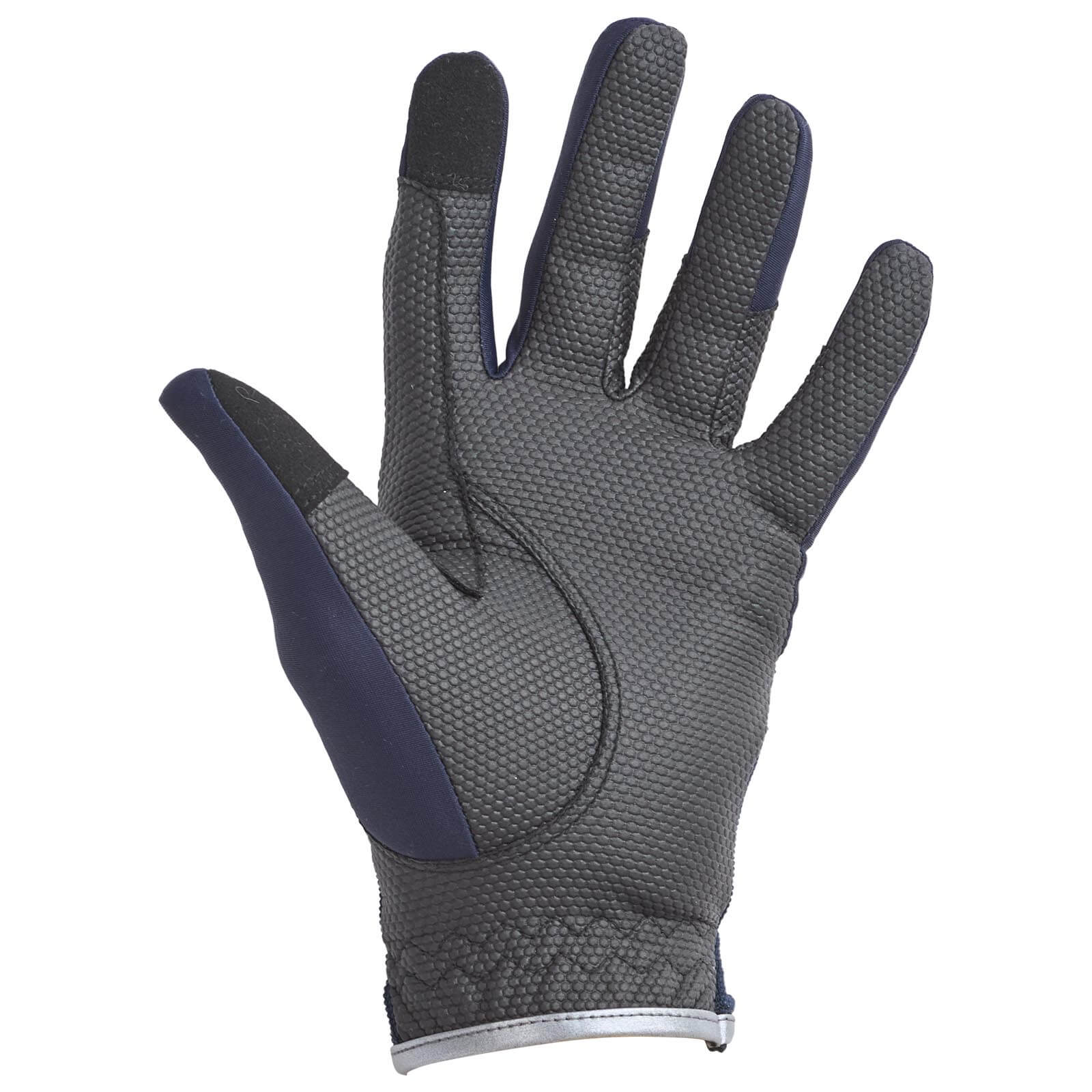 * eleganter Reithandschuh mit besten Griffeigenschaften für gefühlvolle Zügelhilfen – sitzt angenehm wie eine zweite Haut * silberfarbene Biesen und glitzernde Akzente als optische Highlights * atmungsaktive Materialien im Handrücken, angenehm leicht und elastisch * Handfläche komplett aus strapazierfähigem, elastischem Grip Material mit Wabenstruktur * zusätzliche Zügelverstärkungen an den stark beanspruchten Stellen * Spezialmaterial an Daumen und Zeigefinger zur Bedienung von Touchscreens * Weitenregulierung mit Klettverschluss * elastischer Übergang am Handgelenk * Material Handrücken: 80% Nylon, 20% Polyester * Material Fingeroberseite: 78% Nylon, 22% Elasthan * Material Handfläche: 50% Polyester, 50% Polyurethan