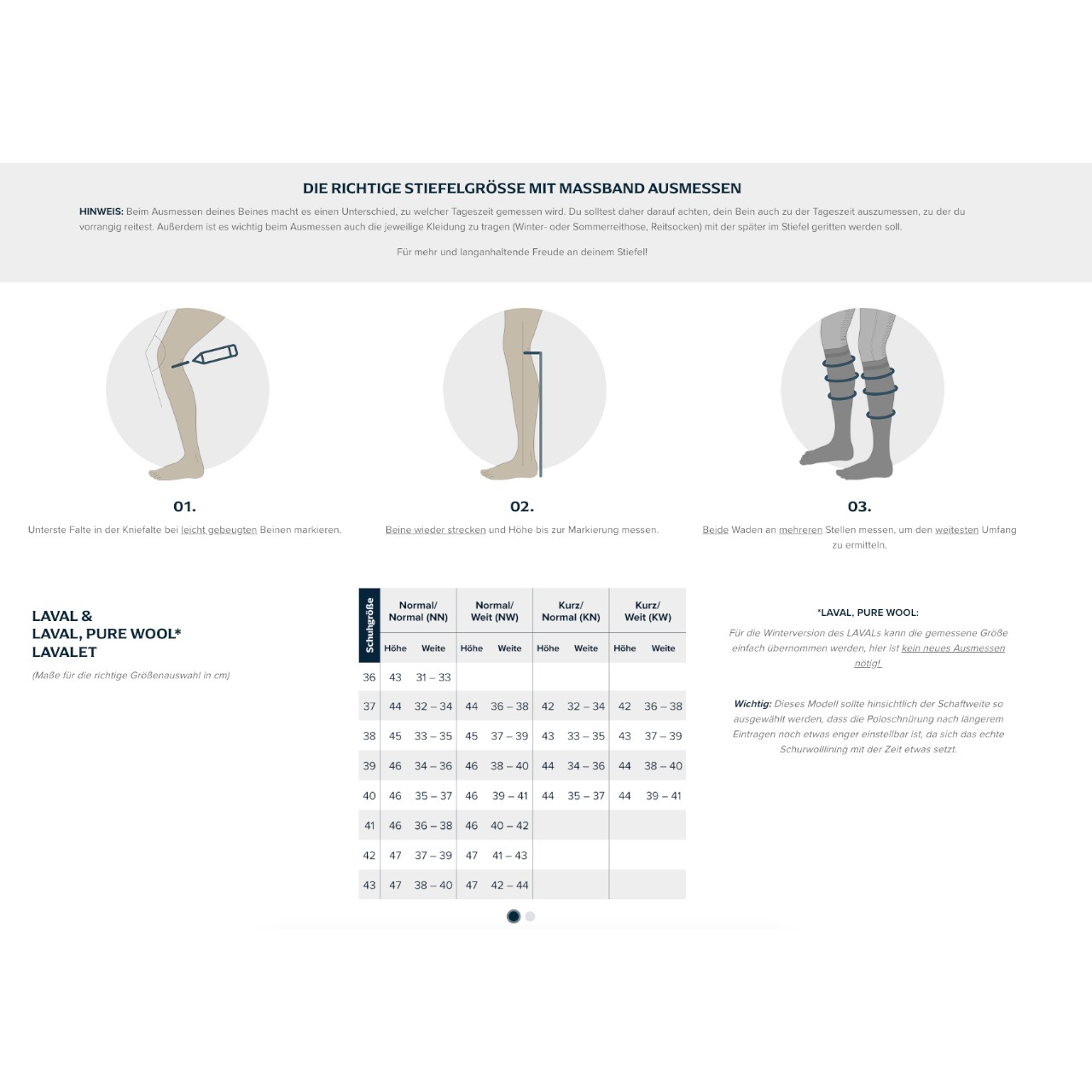 * aus wunderschönem europäischem Rindsleder * ansprechende, durchgehende Polo-Schnürung zum Einstellen der gewünschten Wadenpassform, unterlegt mit zu fixierender Lederzunge, um ein Lösen der Schnürung bei Nicht-Tragen zu verhindern * unterlegter und abgedeckter YKK®-Reißverschluss hinten * Elastikeinsatz entlang des Reißverschlusses für eine optimale Wadenpassform mit einer Varianz von bis zu 1 cm * Wade innen aus strapazierfähigem Leder mit speziellen Hafteigenschaften für perfekten Grip * äußerer Schaftbogen: 7 cm * Reißverschlussschieber oben durch Druckknopf-Lederabdeckung geschützt * Reißverschlussschutz im Fersenbereich mit doppelter Sporenhalterung * handgefertigte, stabilisierte Gummi-Schichtsohle mit rutschfestem Riffel-Profil und festem Absatz zum Reiten * echtes Lederlining * herausnehmbare, vorgeformte Innensohle, extra stoßdämpfend und druckmindernd für ganztägigen Tragekomfort