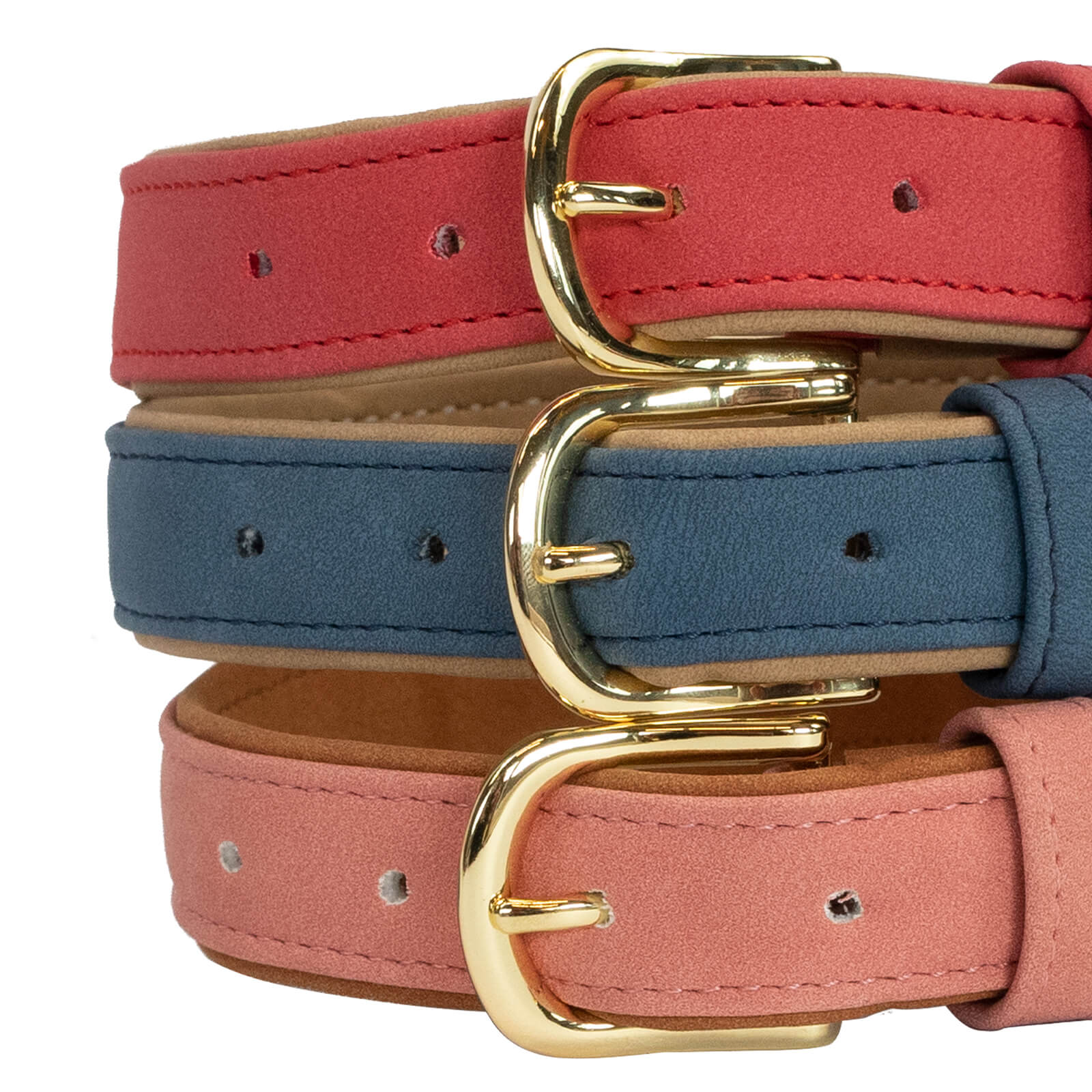 Hundehalsband Vegan Leder von Kentucky Dogwear – Stil trifft auf Nachhaltigkeit Hundehalsband Vegan Leder von Kentucky Dogwear vereint elegantes Design mit umweltfreundlichen Materialien. Dieses edle Hundehalsband ist nicht nur ein optischer Hingucker, sondern auch sanft zur Haut deines Vierbeiners. Genieße die perfekte Kombination aus Stil und Komfort für deinen Hund. Elegantes Design für stilbewusste Hunde Das Hundehalsband Vegan Leder besticht durch seine edle Optik und hochwertige Verarbeitung. Erhältlich in den stilvollen Farben Navy, Red und Peach, passt es zu jeder Fellfarbe und jedem Stil. Die vergoldeten Messingbeschläge verleihen dem Halsband einen luxuriösen Touch, während das weiche Kunstleder für einen angenehmen Tragekomfort sorgt. Innovative Funktionalität für den täglichen Gebrauch Dieses Hundehalsband ist aus weichem, veganem Leder gefertigt, das besonders leicht und geschmeidig ist. Die goldene Schnalle bietet nicht nur sicheren Halt, sondern ist auch ein elegantes Designelement. Dank der leichten Reinigung bleibt das Halsband stets in bestem Zustand, ideal für den täglichen Einsatz. Vielseitigkeit und Qualität für jeden Anlass Das Hundehalsband Vegan Leder von Kentucky Dogwear ist in verschiedenen Größen erhältlich, um jedem Hund den optimalen Sitz zu bieten. Es eignet sich hervorragend für empfindliche Hunde, die zu Scheuerstellen neigen. Pflegeleicht und langlebig, ist es der perfekte Begleiter für Spaziergänge und Abenteuer. Gönne deinem Hund den Komfort und Stil, den er verdient! * Veganes Leder – umweltfreundlich und stilvoll * Weiches Material – ideal für empfindliche Hunde * Leichtes Gewicht – maximaler Tragekomfort * Goldene Schnalle – elegantes Design * Leichte Reinigung – einfache Pflege