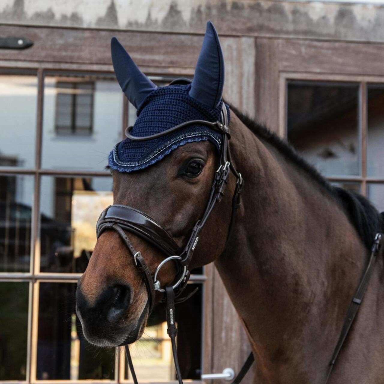 Eleganz trifft Schutz: Kentucky Horsewear Fliegenmütze mit Glitzersteinen. Schütze dein Pferd stilvoll. Jetzt entdecken und kaufen!