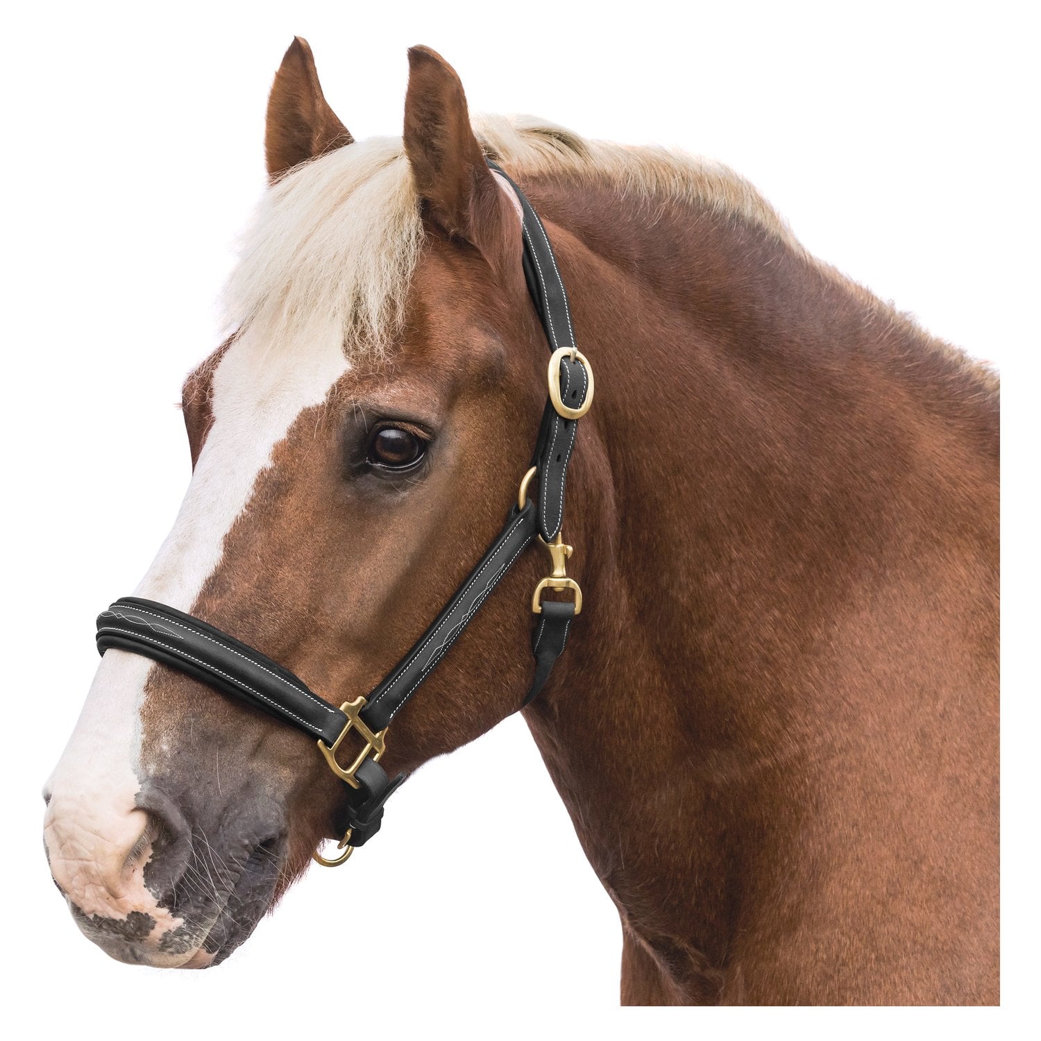 Edles Leder-Halfter Boston aus bestem Qualitätsleder. Für einen hohen Tragekomfort sorgt die weiche Polsterung an Nasen- und Genickstück. Sehr stilvoll zeigen sich die matte Optik, die weißen Nähte, die Ziernähte sowie die messingfarbenen Beschläge. Für eine optimale Anpassung ist das Halfter 2-fach verstellbar durch Dornschnallen und mit einem Karabinerhaken zu schliessen.