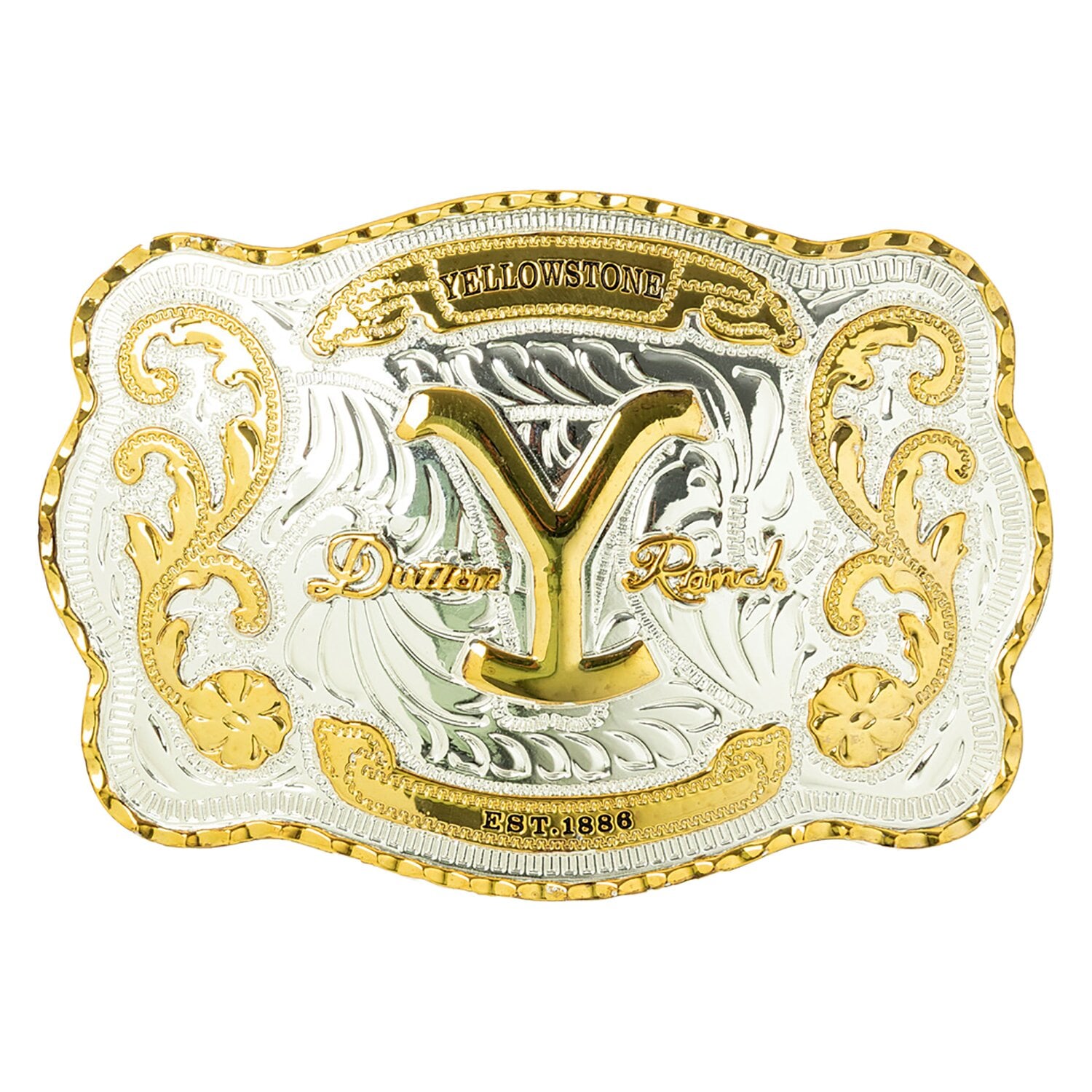 Die Gürtelschnalle G6-611 von STARS & STRIPES der Yellowstone Collection ist ein echtes Statement-Piece für Western-Fans. Mit erhabener, glänzender Goldapplikation in Form des Yellowstone-Logos, blumigen Elementen und der Aufschrift Dutton Ranch verkörpert sie den Spirit von Freiheit, Tradition und Ranch-Lifestyle. Gefertigt aus hochwertiger Zinklegierung und mit sorgfältig ausgearbeiteten Prägungen veredelt, eignet sich die Schnalle perfekt als Blickfang für Jeans, Chaps oder Lederhosen. Ob im Alltag, zu besonderen Anlässen oder als Sammlerstück – dieses Accessoire bringt den unverkennbaren Charme des Wilden Westens direkt an den Gürtel.