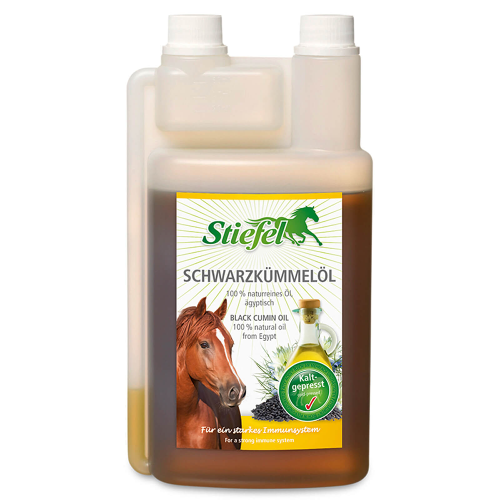 Stiefel Schwarzkümmelöl Zusatzfutter Nahrungsergänzungsmittel | kavalio – für mich und mein Pferd