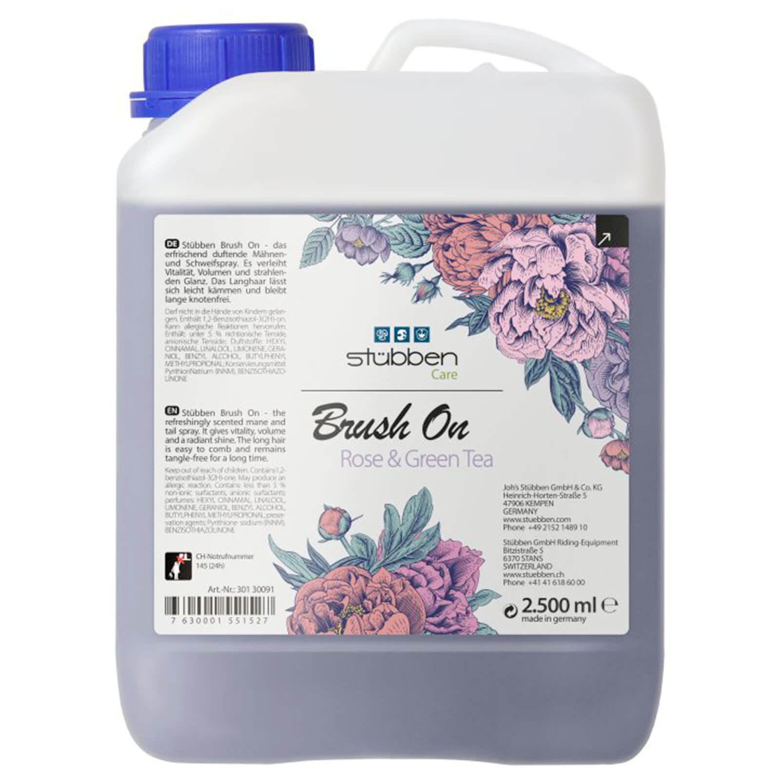 Mähnenspray Brush on Mähnen- und Schweifstriegel von Stübben – Effektive Pflege für seidiges Langhaar Stübben Mähnenspray Brush on Mähnen- und Schweifstriegel sorgt für optimale Pflege von Mähne und Schweif deines Pferdes. Die verschiedenen Duftvarianten bieten je nach Vorliebe eine angenehme Erfahrung. Ideal für die regelmäßige Pflege und das leichte Kämmen von Langhaar. Zusammensetzung und Eigenschaften Das Stübben Mähnenspray ist in den Duftrichtungen Sunflower, Cherry Blossom und Rose & Green Tea erhältlich. Die Formulierung ermöglicht eine einfache Anwendung ohne Rückstände. Verfügbar in handlichen 500 ml Flaschen sowie praktischen 2,5 l Nachfüllkanistern. Anwendung und Dosierung Sprühe das Mähnenspray gleichmäßig auf Mähne und Schweif deines Pferdes. Verwende dabei eine gleichmäßige Menge, um das Haar optimal zu pflegen. Regelmäßig angewendet, unterstützt es die einfache Pflege und Kämmbarkeit des Langhaares. Praktische Informationen Lagere das Produkt kühl und trocken, um die Qualität zu bewahren. Die handlichen Flaschen sind einfach zu verwenden und wiederverwertbar. Stübben steht für hohe Standards in der Pferdepflege und bietet bewährte Qualität für den täglichen Gebrauch. * Erhältlich in 500 ml * Nachfüllkanister 2,5 l * Verschiedene Duftvarianten * Einfache Anwendung * Pflege für Mähne & Schweif