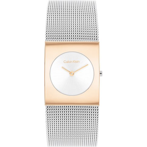 Mit Calvin Klein Uhren trägst du pure, schlichte Raffinesse am Handgelenk. Die Kombination aus hochwertiger Verarbeitung und minimalistischem Design macht diese Zeitmesser zu einem unverzichtbaren Accessoire für alle, die auf klare Ästhetik setzen. Diese Damenuhr mit Edelstahl-Gehäuse an einem klassischen Edelstahl-Armband ist dank des sportlich-eleganten Designs der perfekte Begleiter für jeden Anlass. Die Calvin Klein Ck Pulse ist bronzefarben und hat ein Armband in Silber, das Ziffernblatt ist perlmuttfarben. Ein besonderer Hingucker ist das eckige Gehäuse. Im Inneren tickt ein zuverlässiges Time Modul-Quarzwerk. Ein Mineralglas bietet eine klare Sicht auf das Ziffernblatt und guten Schutz gegen alle Einflüsse, die bei normalem Gebrauch entstehen. Spritzwasser und Regen machen diesem Zeitmesser nichts aus: Er ist bis zu 3 Bar wasserdicht. Die Klappschließe garantiert sowohl ein leichtes Anlegen als auch einen sicheren Halt am Arm. Wer seinem Look eine stilvolle Note verleihen möchte, macht mit der Calvin Klein Ck Pulse Damenuhr definitiv alles richtig!